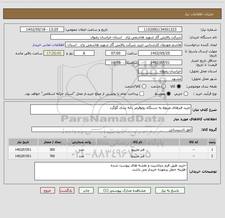 نام دستگاه خریدار:شرکت پالایش گاز شهید هاشمی نژاد استان خراسان رضوی