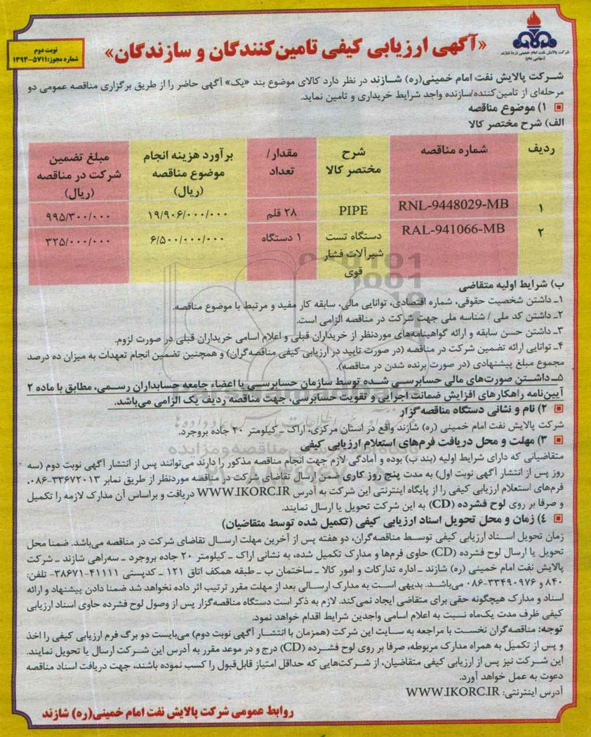 ارزیابی کیفی PIPE و .... نوبت دوم از کلیه افراد متخصص و شرکتها واجد شرایط دعوت به عمل میآید در مناقصه با کد خبرگزاری پارس نماد: 620039 شرکت نمایند.