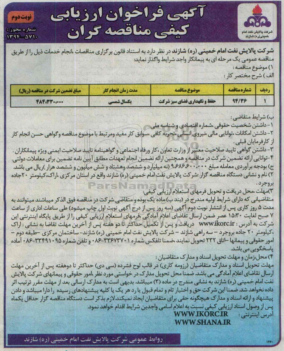 | 94/36 | حفظ و نگهداری فضای سبز شرکت |