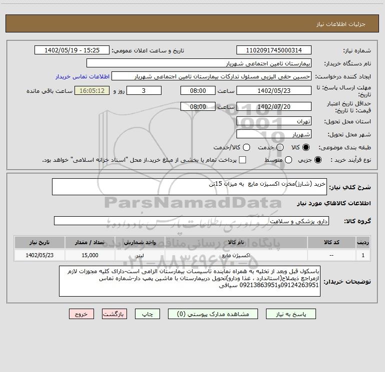 شرح کلی نیاز: خرید (شارژ)مخزن اکسیژن مایع به میزان 15تن
