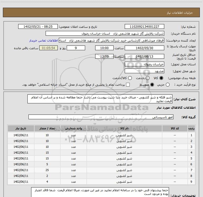 | 9 | -- | شیر کشویی | عدد | 4 | 1402/06/11 |
