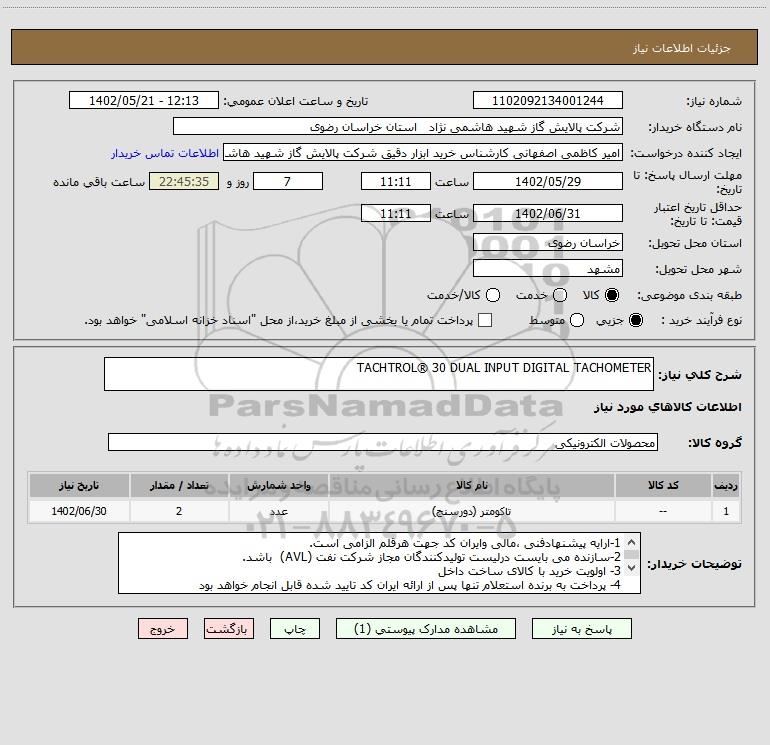 شرح کلی نیاز: TACHTROL® 30 DUAL INPUT DIGITAL TACHOMETER