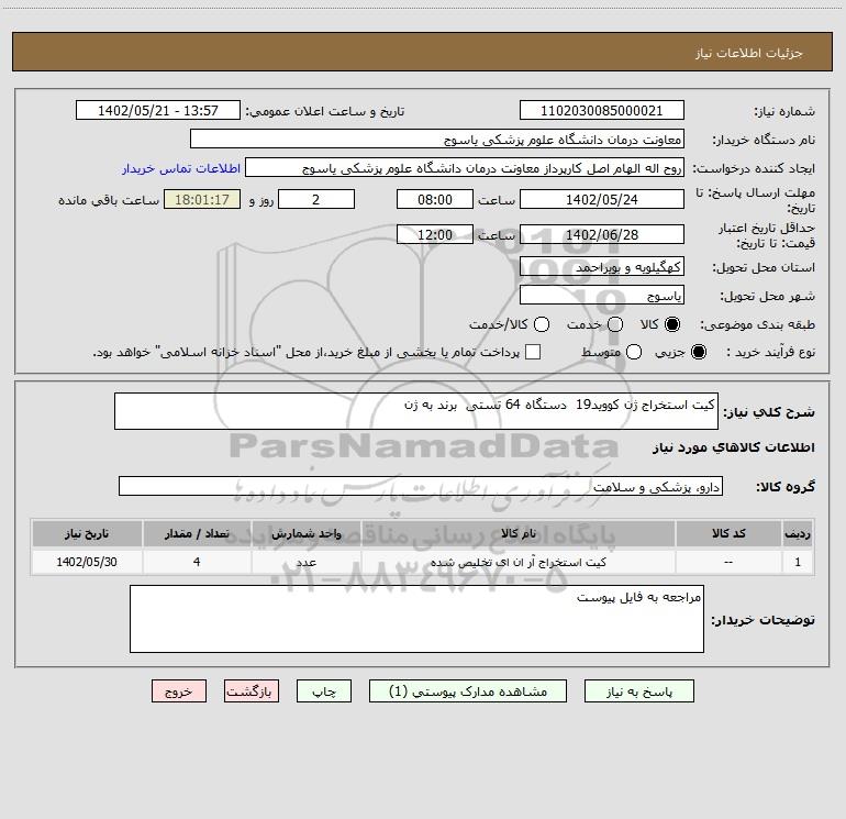 نام دستگاه خریدار:معاونت درمان دانشگاه علوم پزشکی یاسوج