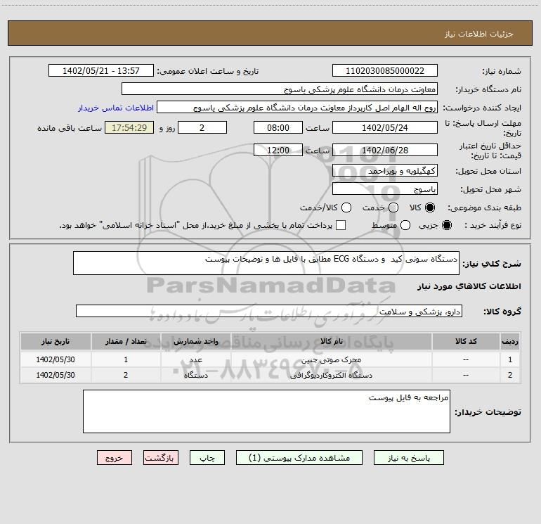 نام دستگاه خریدار:معاونت درمان دانشگاه علوم پزشکی یاسوج