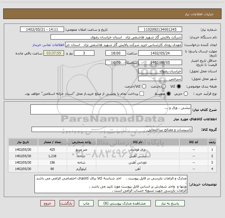 نام دستگاه خریدار:شرکت پالایش گاز شهید هاشمی نژاد استان خراسان رضوی