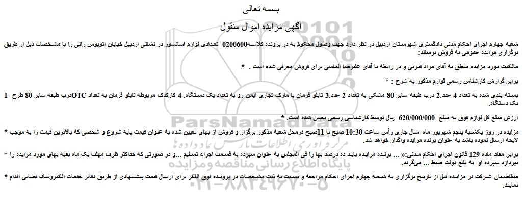 آگهی مزایده اموال منقول