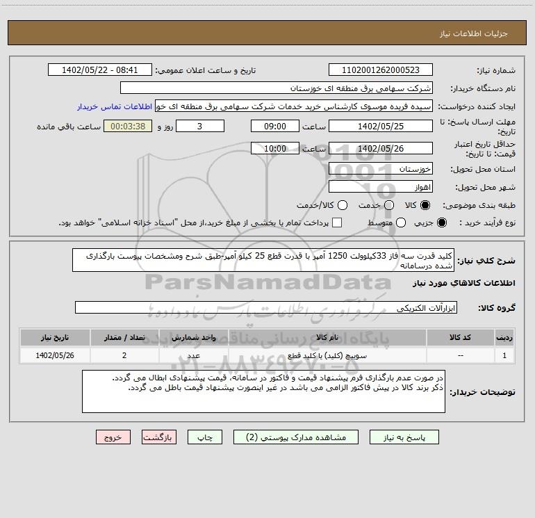 نام دستگاه خریدار:شرکت سهامی برق منطقه ای خوزستان