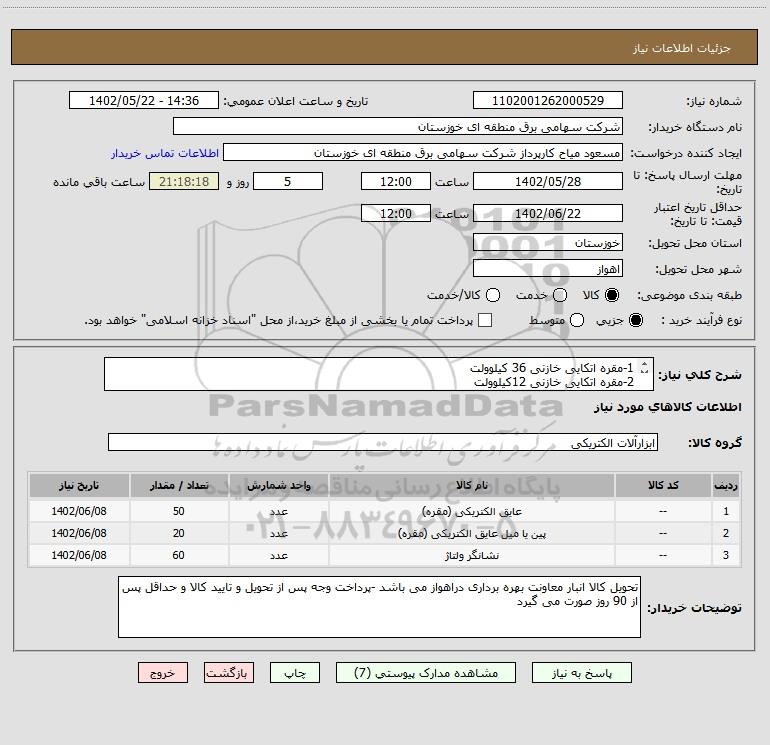 نام دستگاه خریدار:شرکت سهامی برق منطقه ای خوزستان