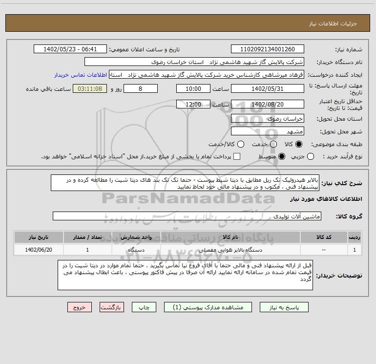 نام دستگاه خریدار:شرکت پالایش گاز شهید هاشمی نژاد استان خراسان رضوی