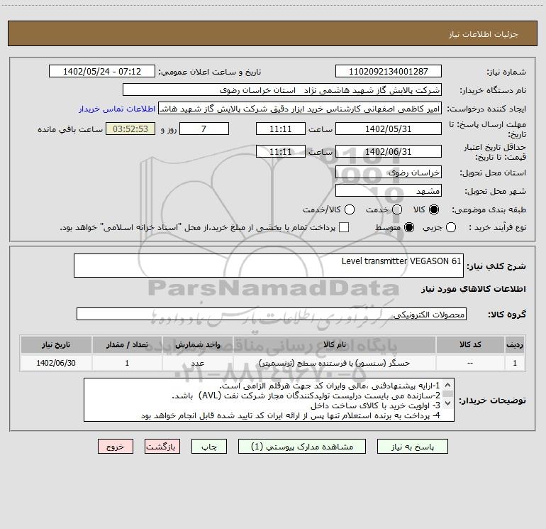 استعلام Level transmitter VEGASON 61, استعلام Level transmitter VEGASON 61