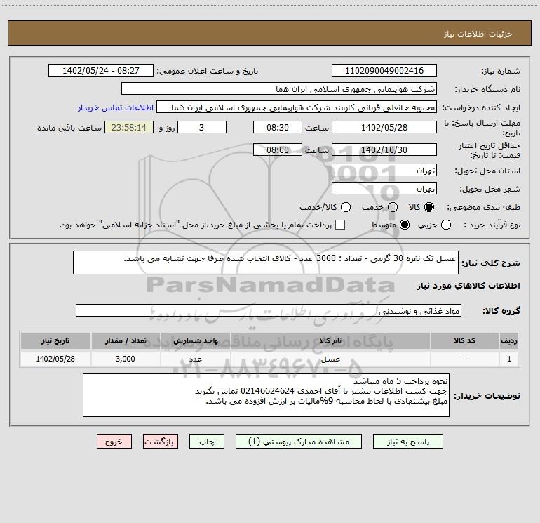 نام دستگاه خریدار:شرکت هواپیمایی جمهوری اسلامی ایران هما