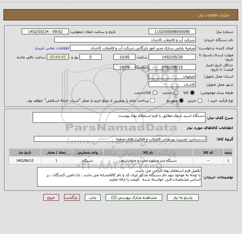 نام دستگاه خریدار:شرکت آب و فاضلاب کاشان