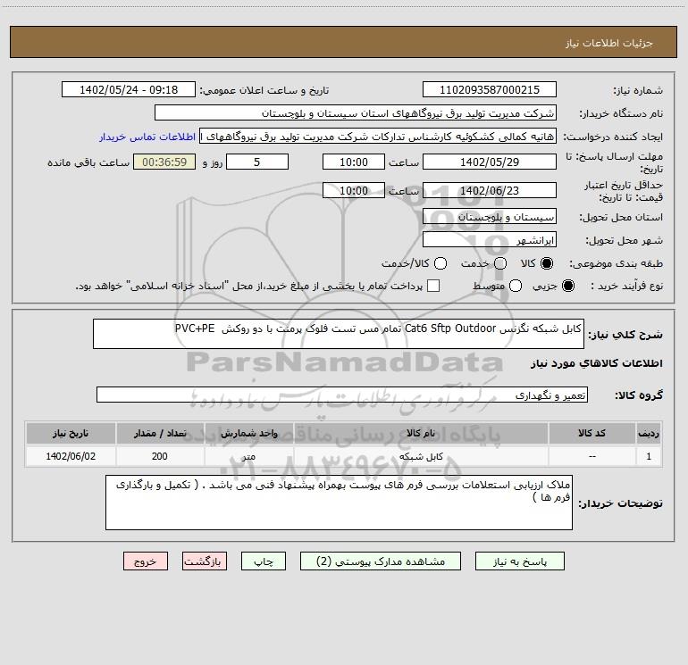 | 1 | -- | کابل شبکه | متر | 200 | 1402/06/02 |