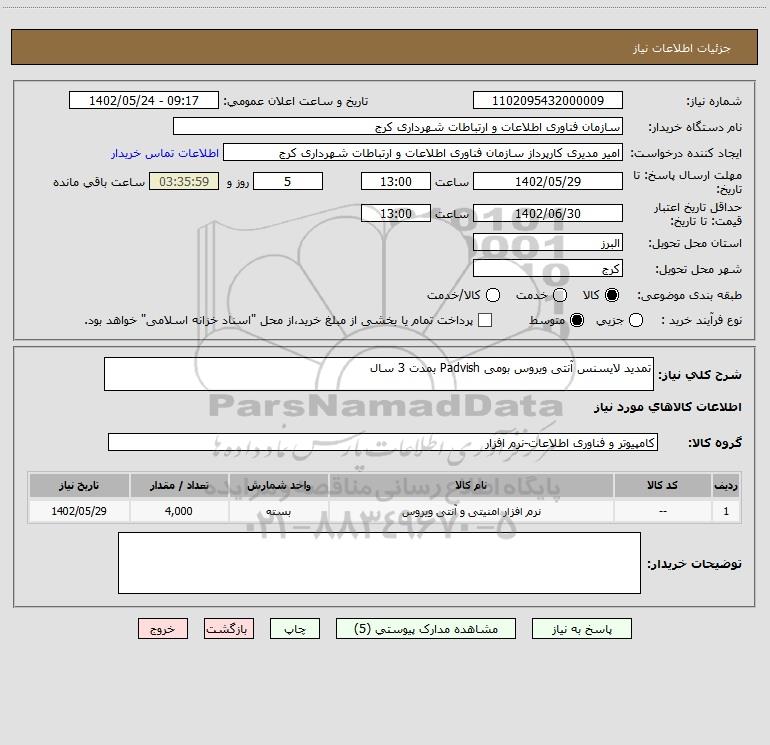 نام دستگاه خریدار:سازمان فناوری اطلاعات و ارتباطات شهرداری کرج