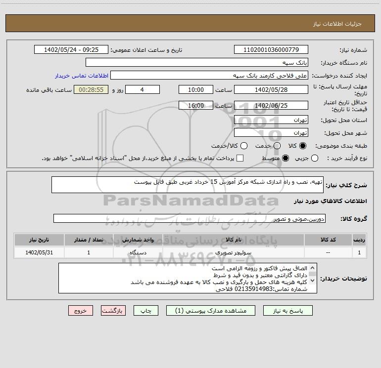 شرح کلی نیاز: تهیه، نصب و راه اندازی شبکه مرکز آموزش 15 خرداد غربی طبق فایل پیوست