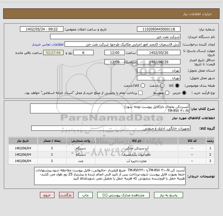 شرح کلی نیاز: آبسردکن یخچال دار(فایل پیوست توجه شود)