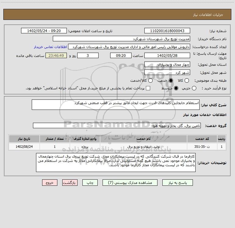 نام دستگاه خریدار:مدیریت توزیع برق شهرستان شهرکرد