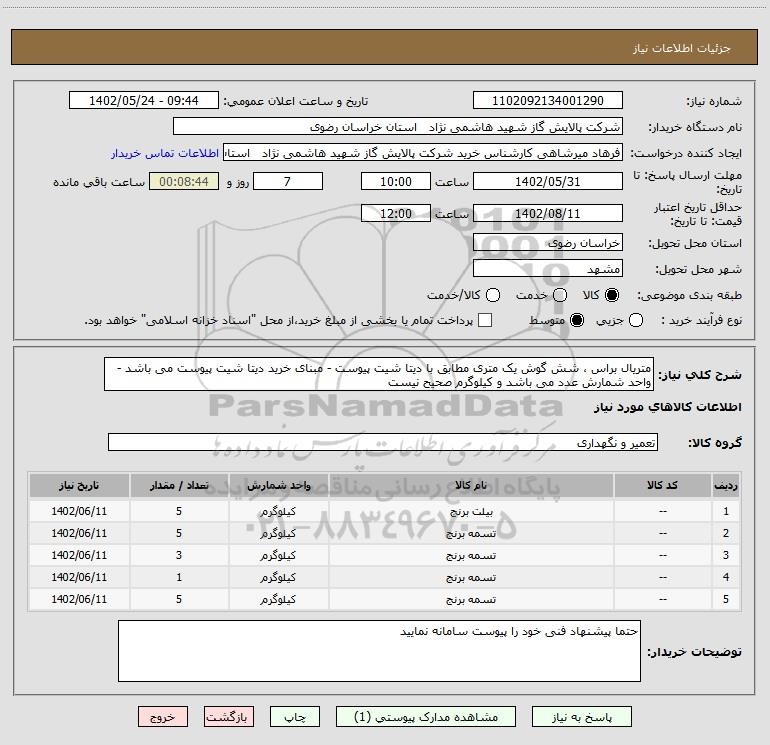 نام دستگاه خریدار:شرکت پالایش گاز شهید هاشمی نژاد استان خراسان رضوی