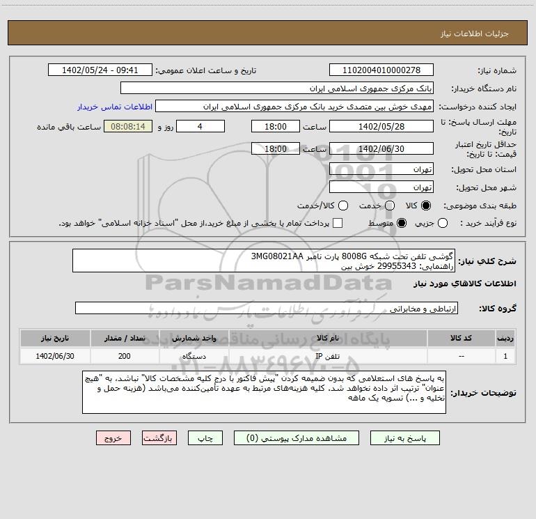 شرح کلی نیاز: گوشی تلفن تحت شبکه 8008G پارت نامبر 3MG08021AA