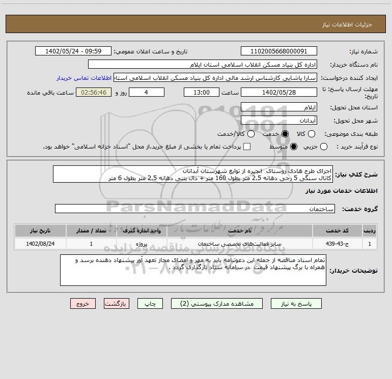 شرح کلی نیاز: اجرای طرح هادی روستای انجیره از توابع شهرستان آبدانان
