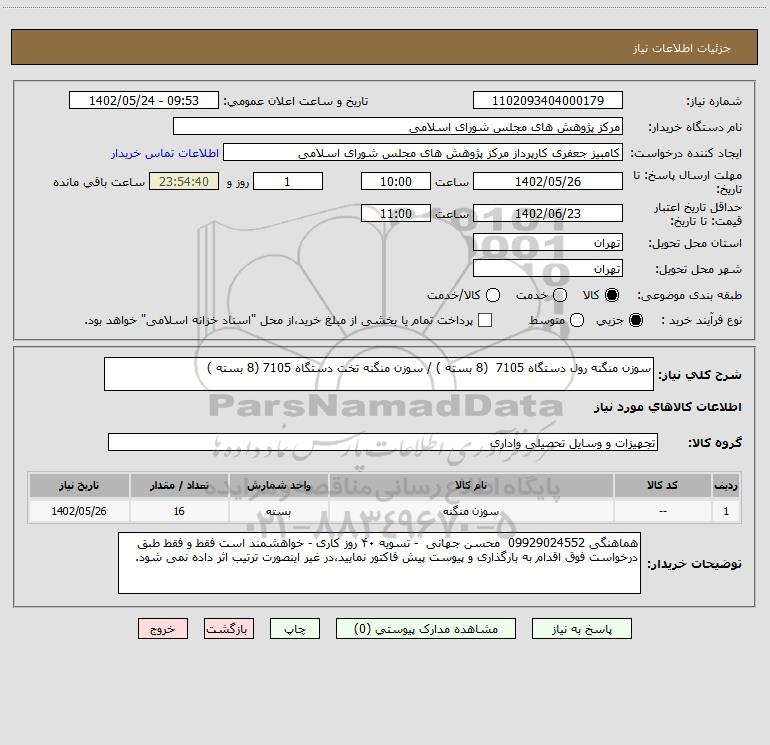نام دستگاه خریدار:مرکز پژوهش های مجلس شورای اسلامی