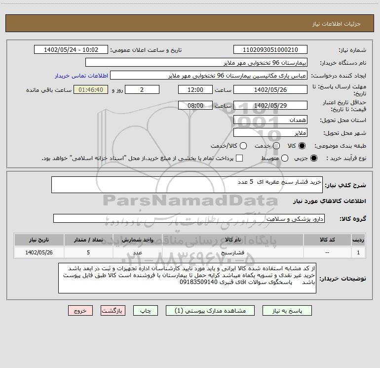 | 1 | -- | فشارسنج | عدد | 5 | 1402/05/26 |