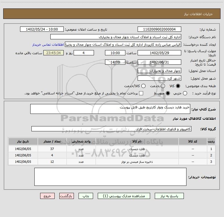 شرح کلی نیاز: خرید هارد دیسک ونوار کارتریج طبق فایل پیوست