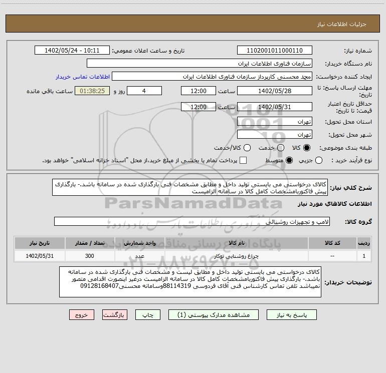 نام دستگاه خریدار:سازمان فناوری اطلاعات ایران