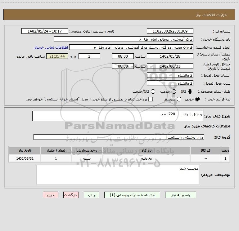 شرح کلی نیاز: ویکریل 1 راند 720 عدد