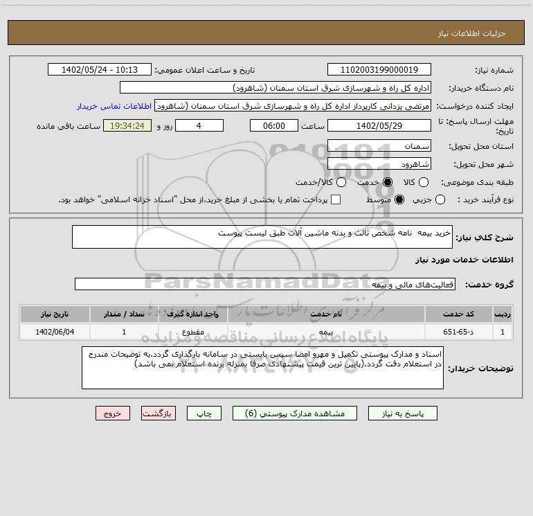 شرح کلی نیاز: خرید بیمه نامه شخص ثالث و بدنه ماشین آلات طبق لیست پیوست