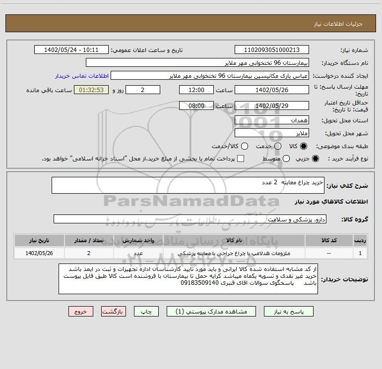 شرح کلی نیاز: خرید چراغ معاینه 2 عدد