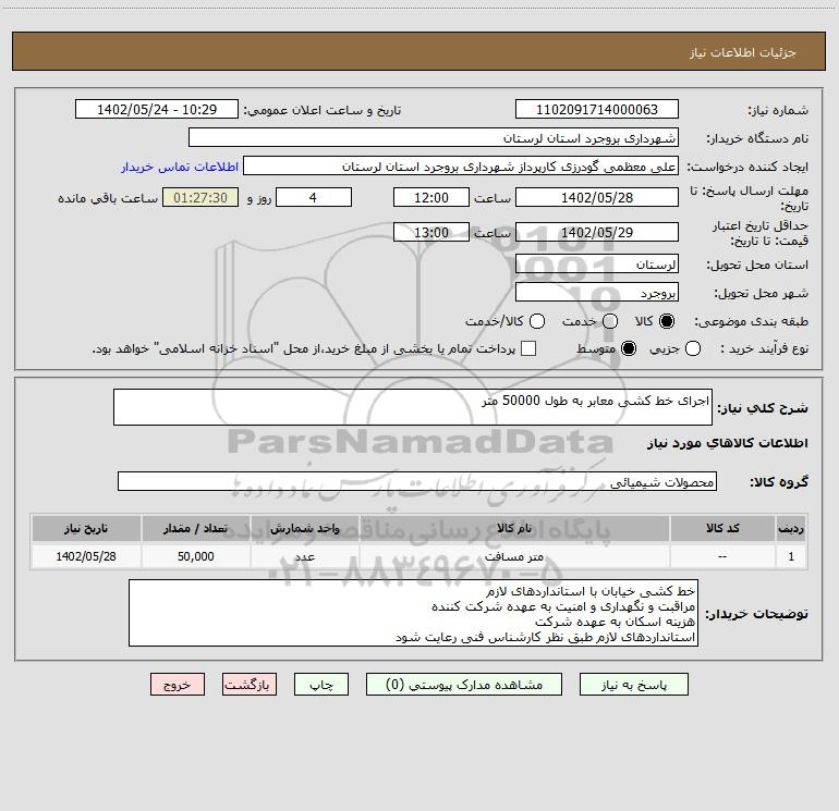 شرح کلی نیاز: اجرای خط کشی معابر به طول 50000 متر