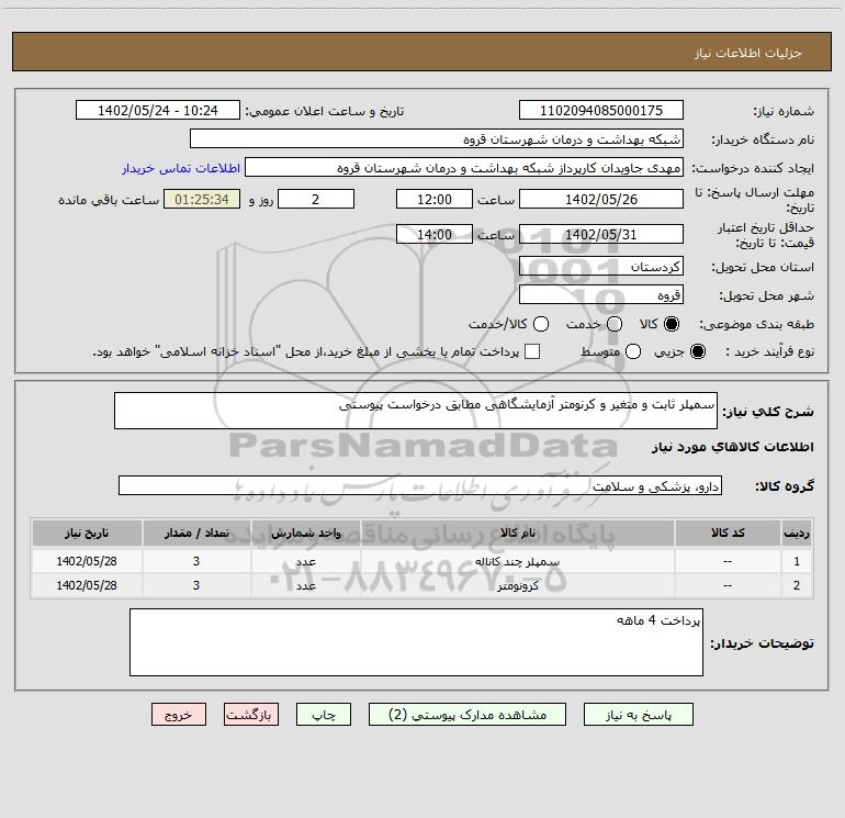 شرح کلی نیاز: سمپلر ثابت و متغیر و کرنومتر آزمایشگاهی مطابق درخواست پیوستی