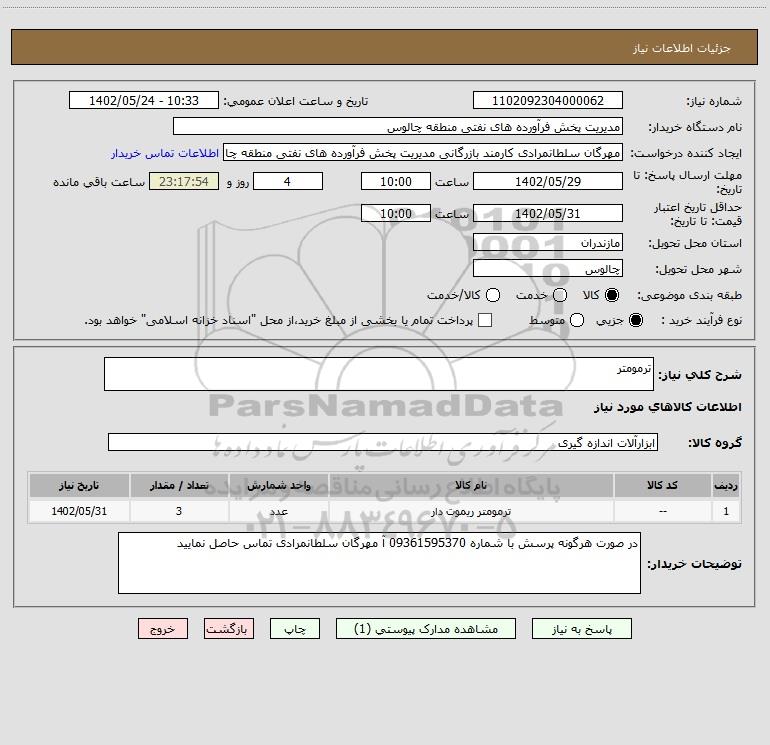 | 1 | -- | ترمومتر ریموت دار | عدد | 3 | 1402/05/31 |