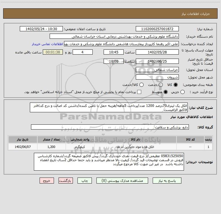 نام دستگاه خریدار:دانشگاه علوم پزشکی و خدمات بهداشتی درمانی استان خراسان شمالی
