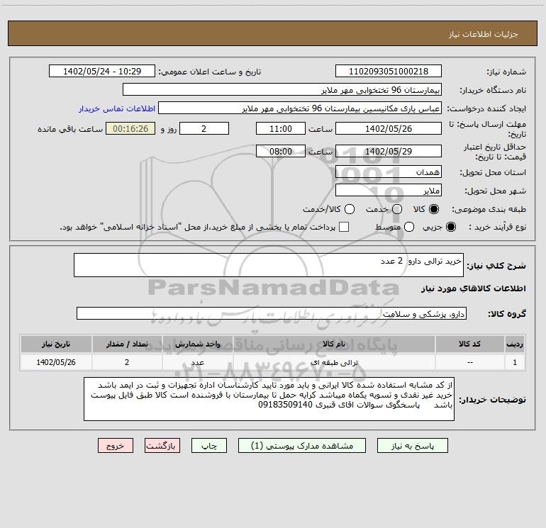 شرح کلی نیاز: خرید ترالی دارو 2 عدد