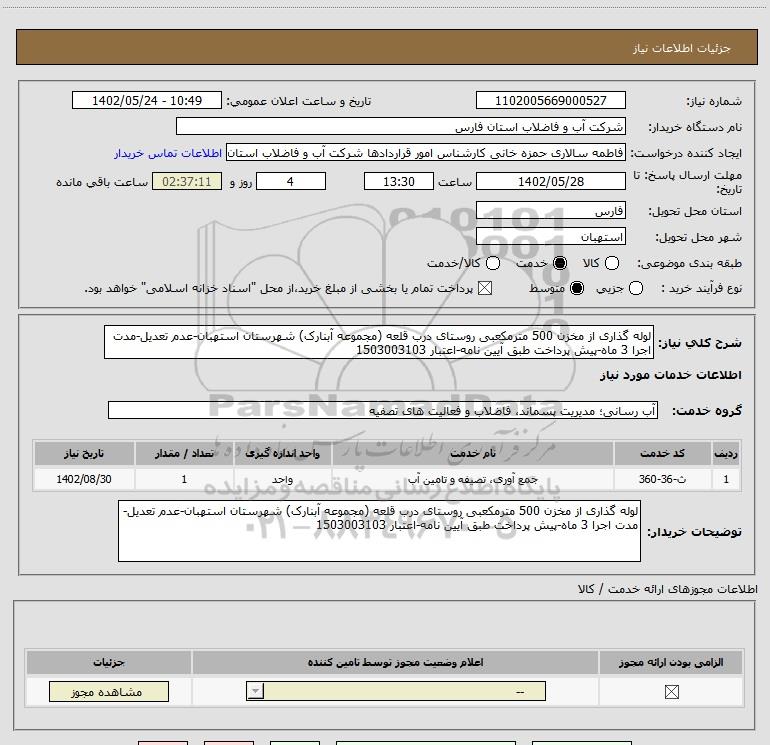 نام دستگاه خریدار:شرکت آب و فاضلاب استان فارس