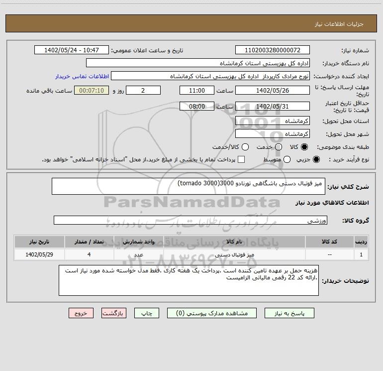 شرح کلی نیاز: میز فوتبال دستی باشگاهی تورنادو 3000(tornado 3000)