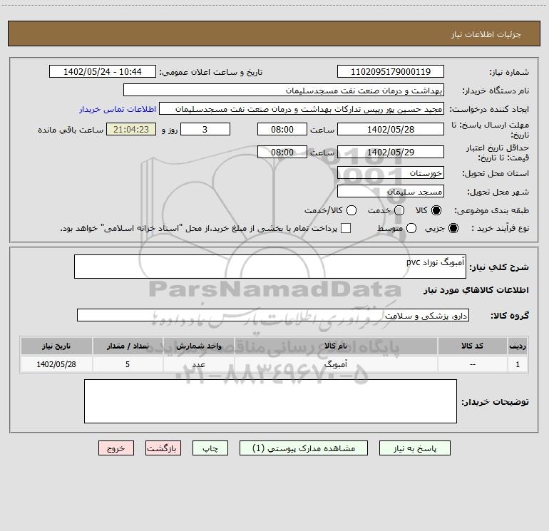 نام دستگاه خریدار:بهداشت و درمان صنعت نفت مسجدسلیمان
