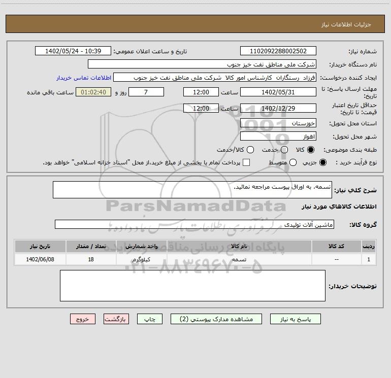 نام دستگاه خریدار:شرکت ملی مناطق نفت خیز جنوب
