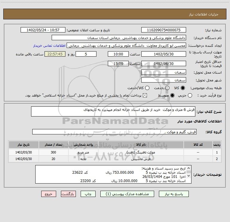 شرح کلی نیاز: فرش 6 متری و موکت خرید از طریق اسناد خزانه انجام میپذیرد به تاریخهای