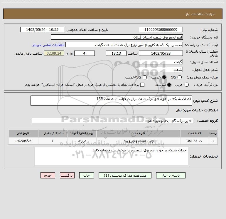 استعلام احداث شبکه در حوزه امور برق شفت برابر درخواست خدمات 135, استعلام احداث شبکه در حوزه امور برق شفت برابر درخواست خدمات 135