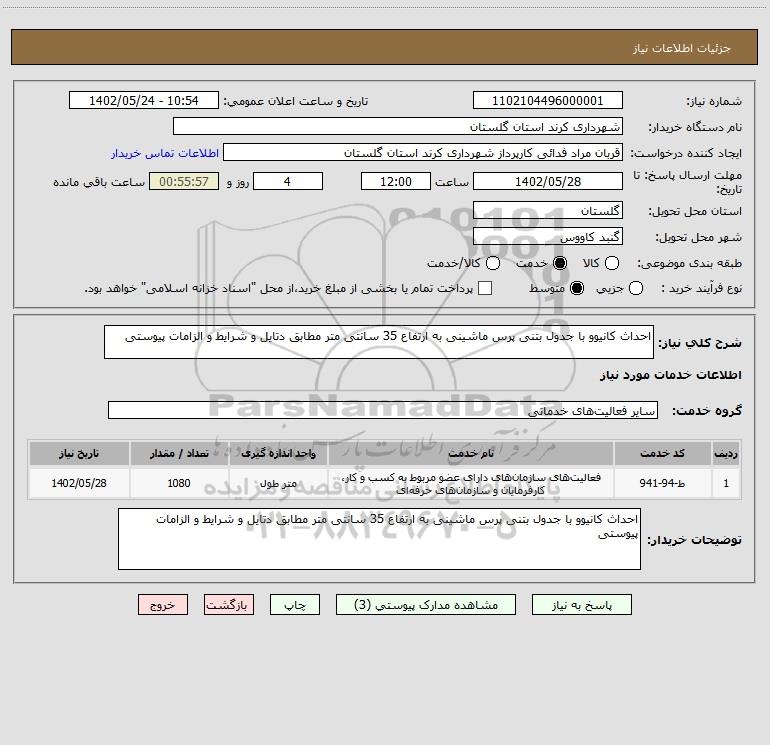 شرح کلی نیاز: احداث کانیوو با جدول بتنی پرس ماشینی به ارتفاع 35 سانتی متر مطابق دتایل و شرایط و الزامات پیوستی