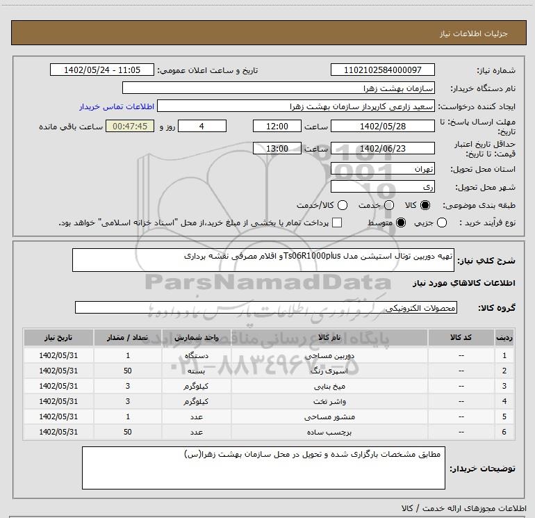 شرح کلی نیاز: تهیه دوربین توتال استیشن مدل Ts06R1000plusو اقلام مصرفی نقشه برداری