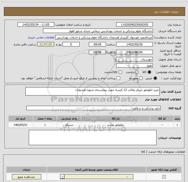 نام دستگاه خریدار:دانشگاه علوم پزشکی و خدمات بهداشتی درمانی جندی شاپور اهواز