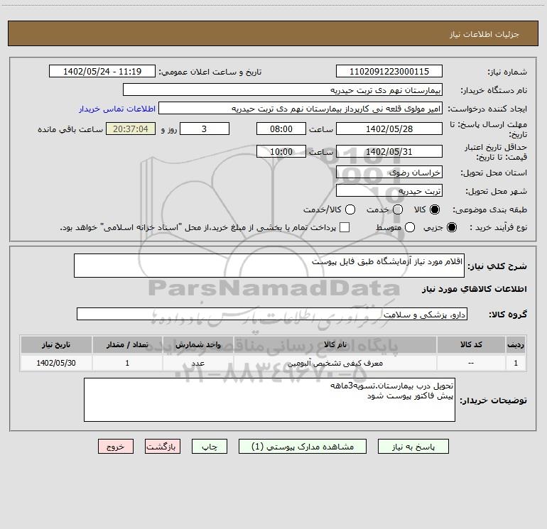 نام دستگاه خریدار:بیمارستان نهم دی تربت حیدریه
