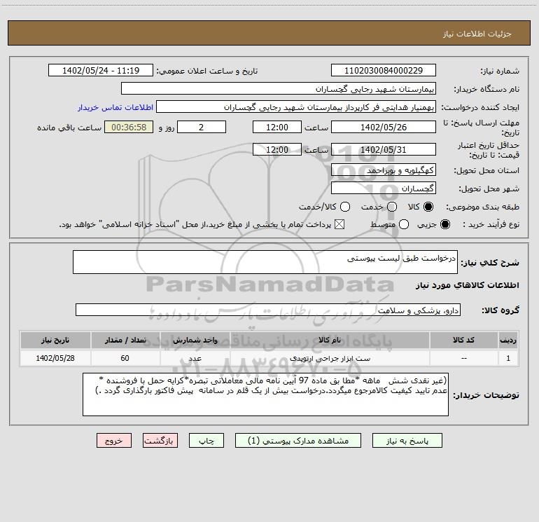 شرح کلی نیاز: درخواست طبق لیست پیوستی