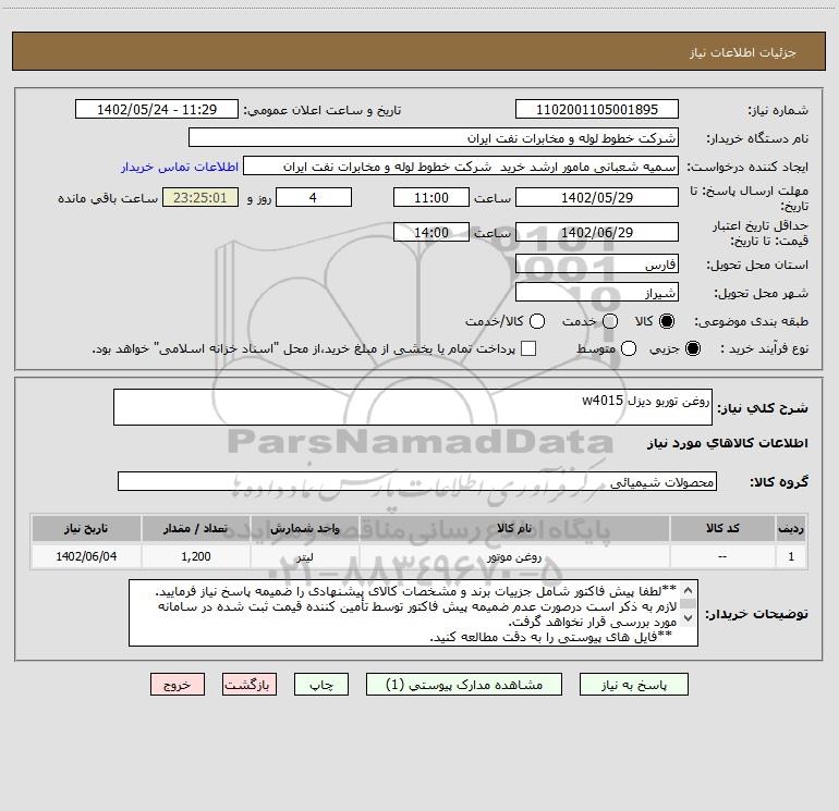شرح کلی نیاز: روغن توربو دیزل w4015