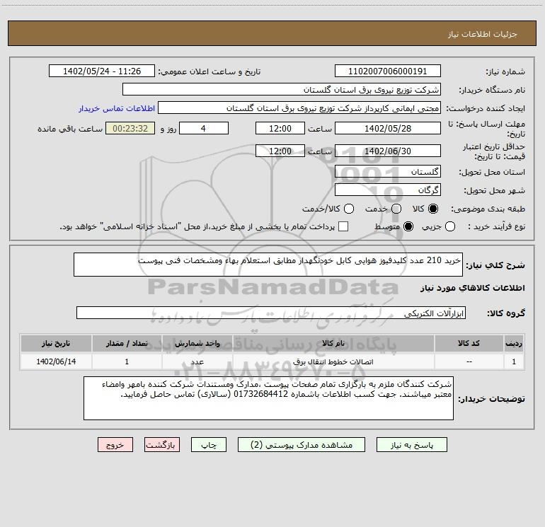 شرح کلی نیاز: خرید 210 عدد کلیدفیوز هوایی کابل خودنگهدار مطابق استعلام بهاء ومشخصات فنی پیوست