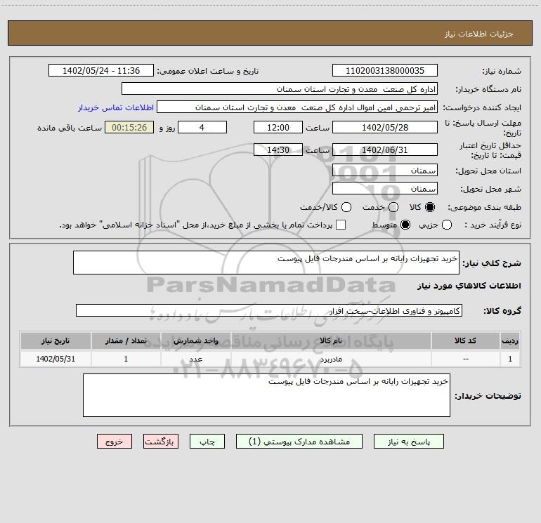 شرح کلی نیاز: خرید تجهیزات رایانه بر اساس مندرجات فایل پیوست